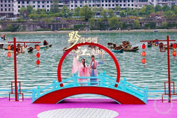 据悉,黔江区第五届鹊桥会活动将持续到10月6日,期间将举办水上歌舞、千帆竞渡、花船巡游、水上火壶、水上打铁花等水上活动。