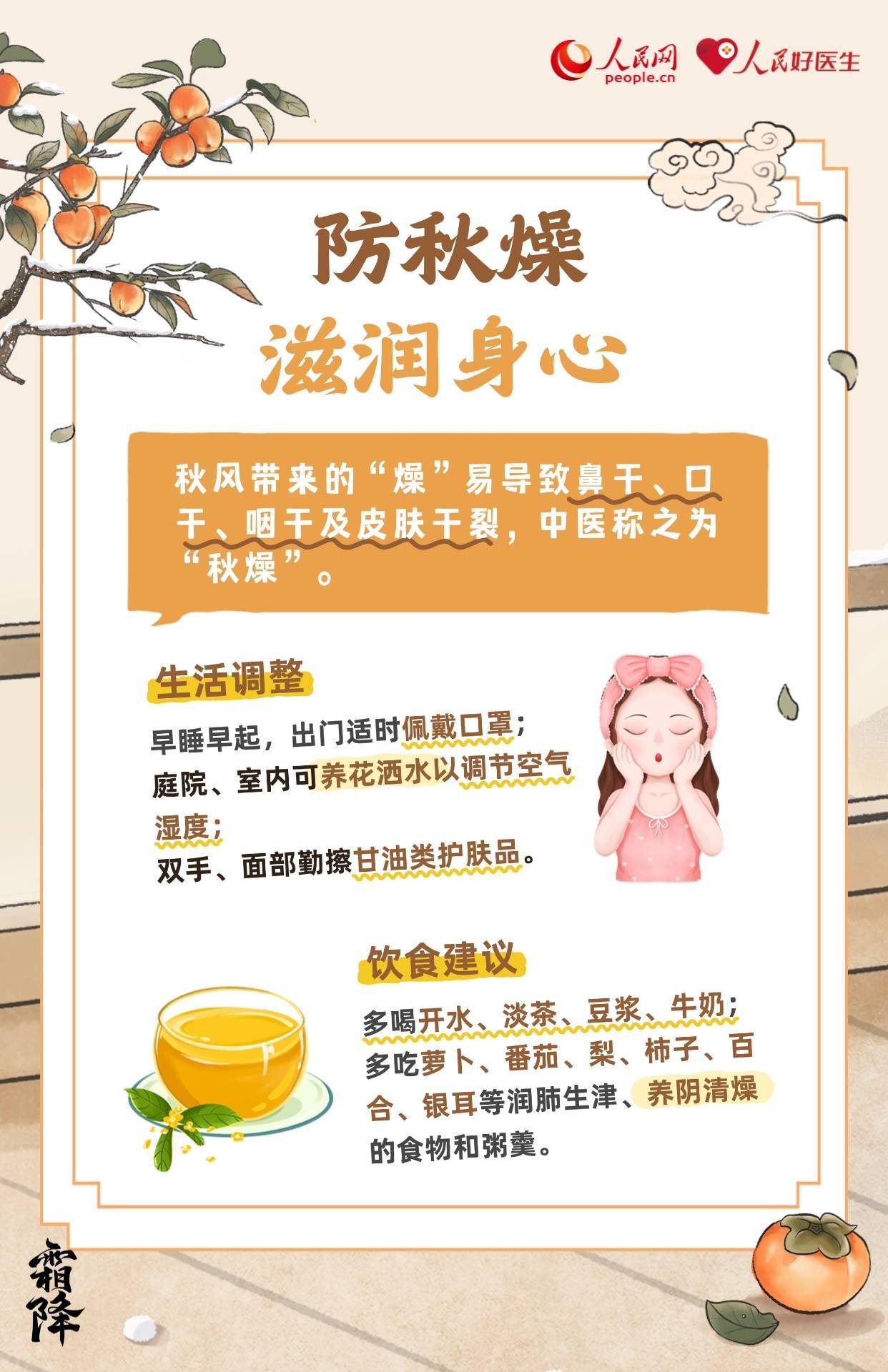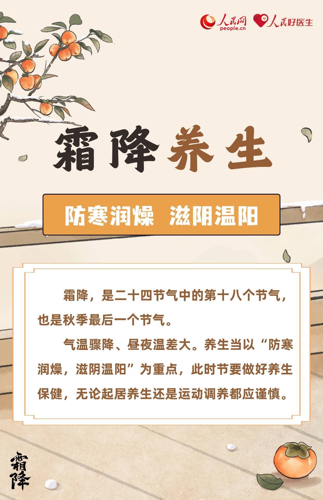 霜降,是二十四节气中的第十八个节气,也是秋季最后一个节气。气温骤降、昼夜温差大。养生当以“防寒润燥配资网站免费,滋阴温阳”为重点,此时节要做好养生保健,无论起居养生还是运动调养都应谨慎,湖北省中医院治未病中心主任医师杨帆为大家带来深秋养生攻略。